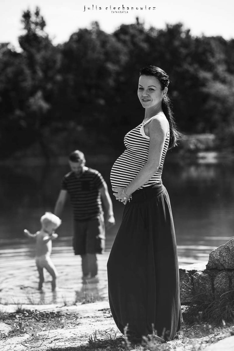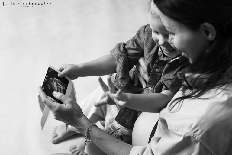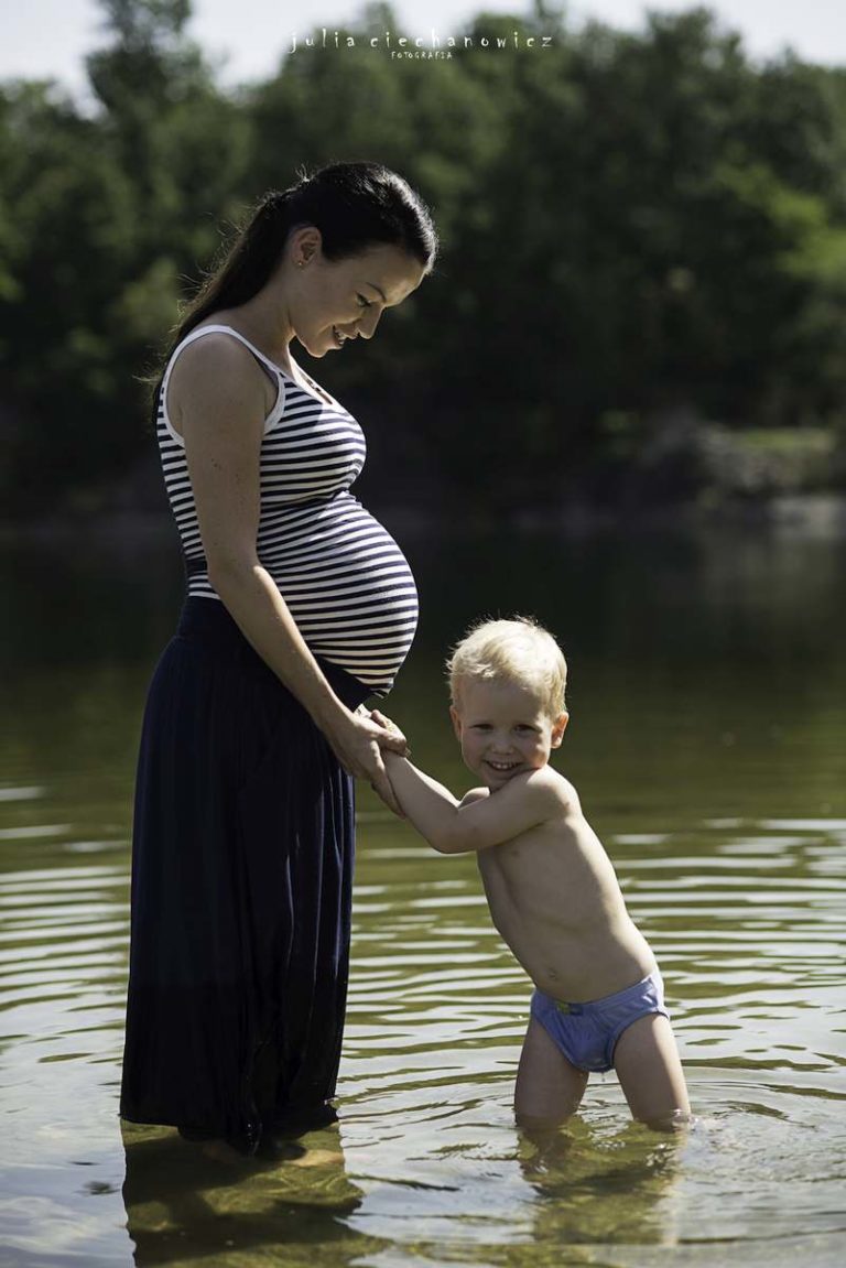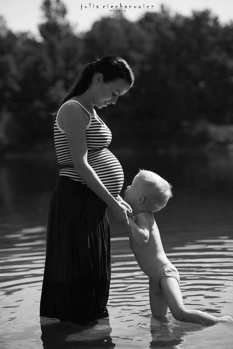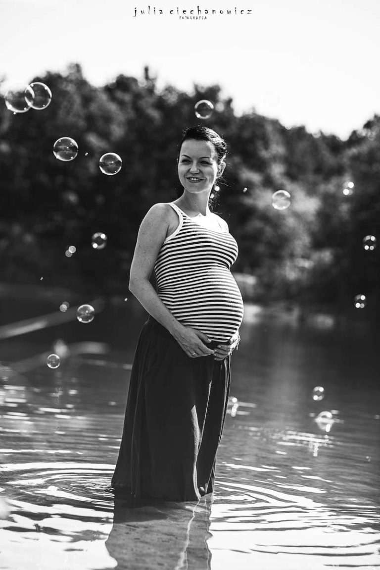 Z Jagodą spotkałyśmy się latem. Sesja odbyła się w Strzegomiu. Jagodzie towarzyszył jej mąż Przemek i syn Tymon. Widać było, że świetnie się ze sobą czują. Jagoda promieniała w letnim słońcu. Dziecięce igraszki trwały w najlepsze, bańki mydlane radośnie leciały w niebo, a zdjęcia niemal robiły się same.Na drugą część sesji zaprosiłam Jagodę do studia. Tam mogliśmy opowiedzieć nieco inaczej, może odrobinę bardziej intymnie o radości z tego, że już niedługo pojawi się nowy członek rodziny – mały braciszek.