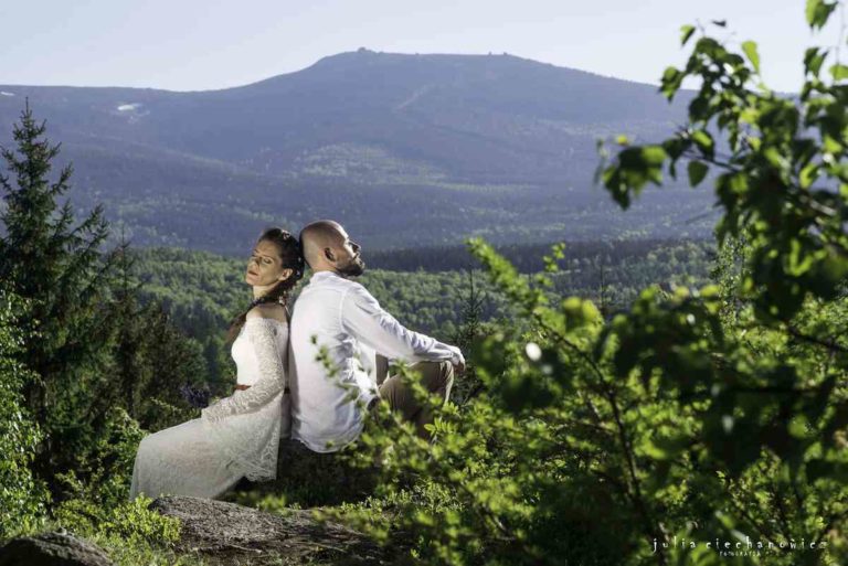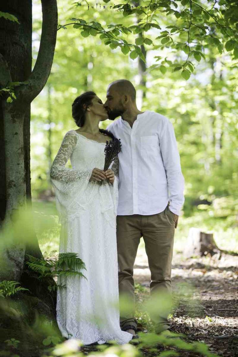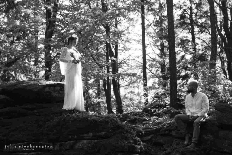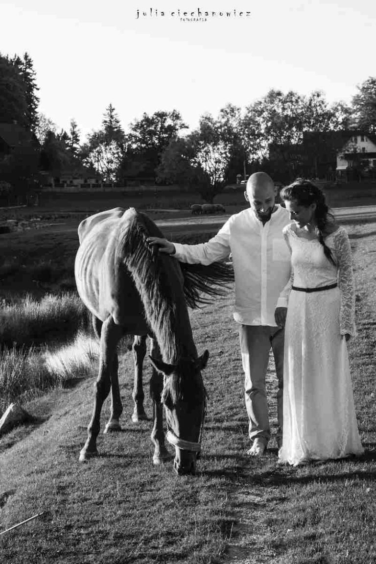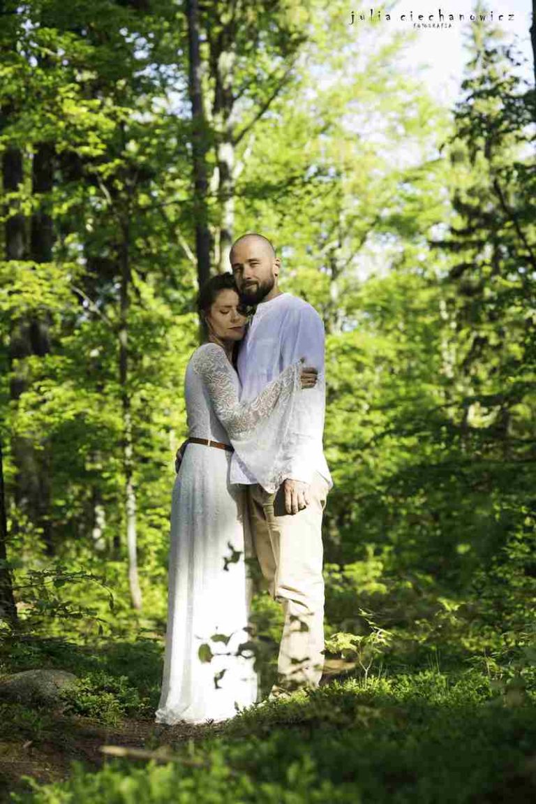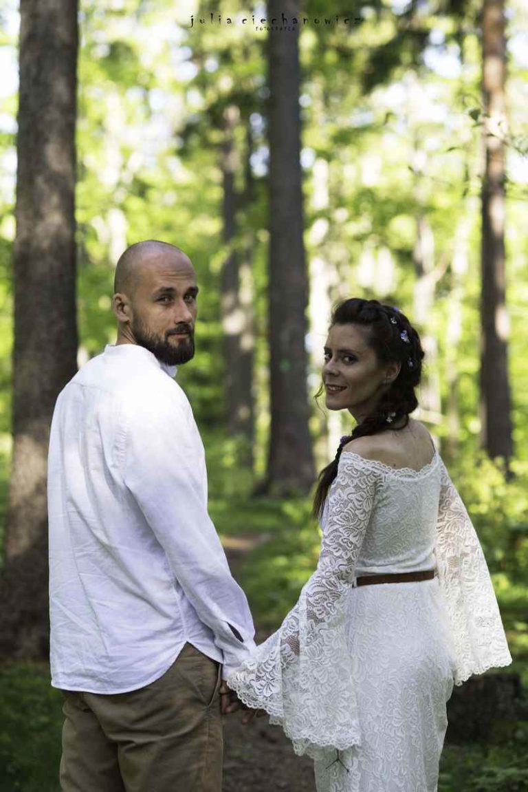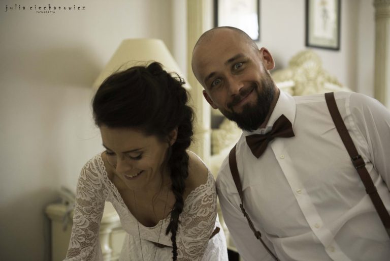 Pałac Brunów w maju 2018 roku stał się świadkiem pięknej uroczystości. Lena i Przemek weselili się tam wraz ze swoją rodziną i przyjaciółmi. Hulankom i swawolom nie było końca, muzyka grała, goście tańczyli do białego rana, jadła i napoju było aż nadto, a ja mogłam do woli fotografować – najpierw ślub a potem wesele. Kochający naturę Państwo Młodzi kilka dni po weselu zdecydowali się jeszcze na małą eskapadę.Sesja plenerowa odbyła się w bajecznych lasach michałowickich. Udało się nam zahaczyć także o zagrodę z kozami i końmi. Czasem dzieje się tak, że światło, nastrój i ludzie idealnie współgrają w jednej zamkniętej w kadrze chwili. Tak było właśnie wtedy. Magia…