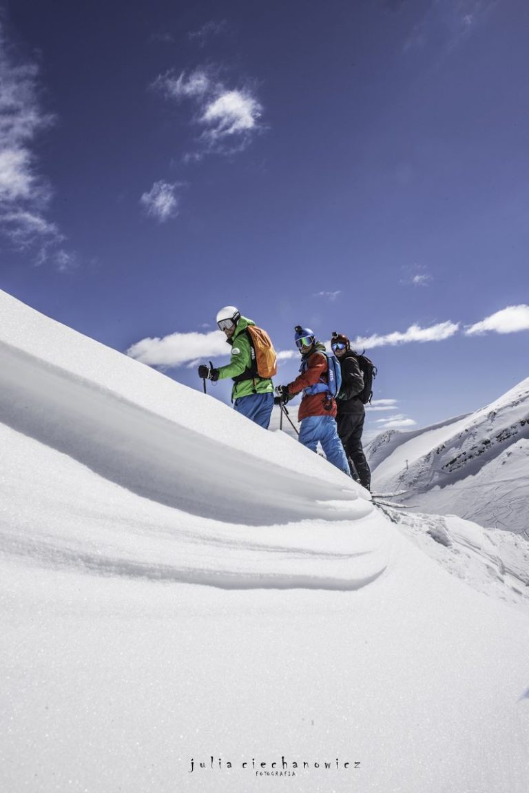 I nie było – cale szczęście! Za to było fantastyczne wyzwanie: cały dzień zdjęć, piękna pogoda, trasy jak marzenie, krajobraz zapierający dech w piersiach i energia, radość ze wspólnej jazdy. Świeży śnieg, brak trasy? To dopiero frajda.