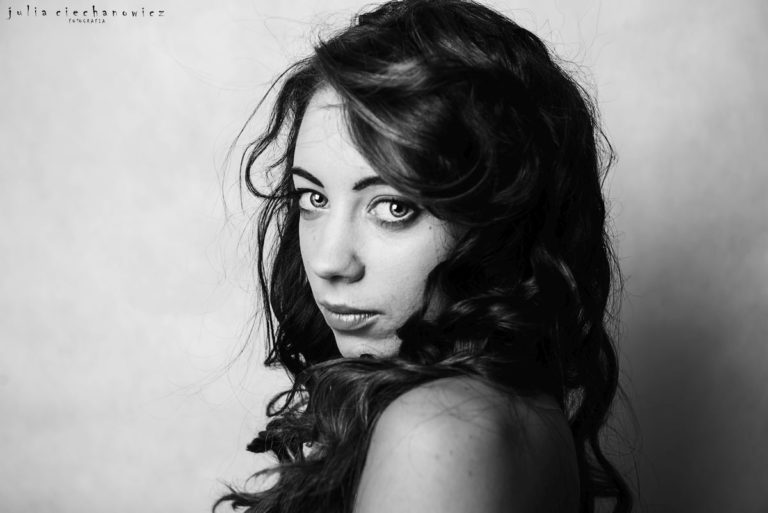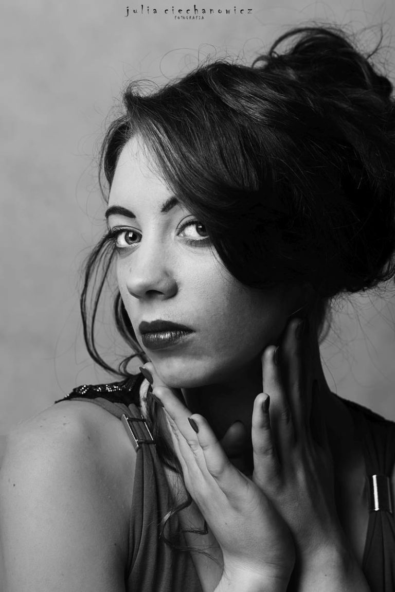 Szybko okazało się, że Agnieszka to niezwykle pogodna i otwarta osoba – podczas sesji panowała cudowna atmosfera pełna śmiechu i kreatywności. W efekcie powstały portrety będące kwintesencją wdzięku i kobiecości. Dopieszczając je podczas obróbki wybrałam czarno-białą fotografię, a jedynym kolorem, jaki wprowadziłam, była zmysłowa czerwień.
