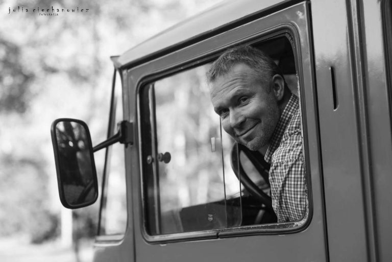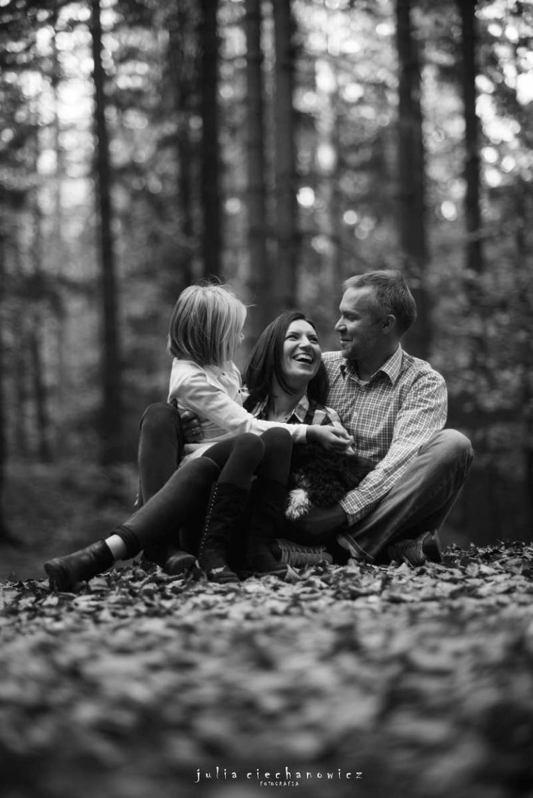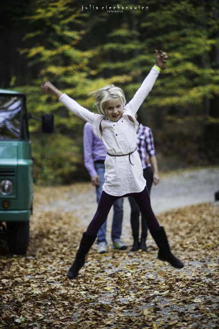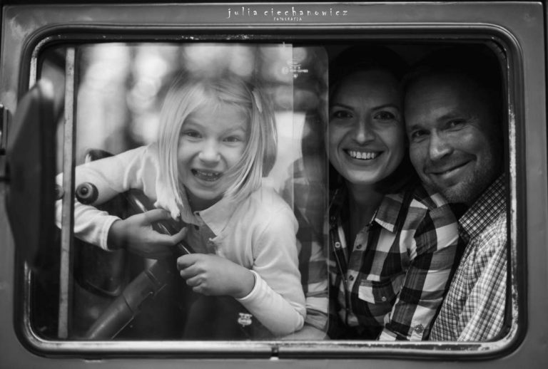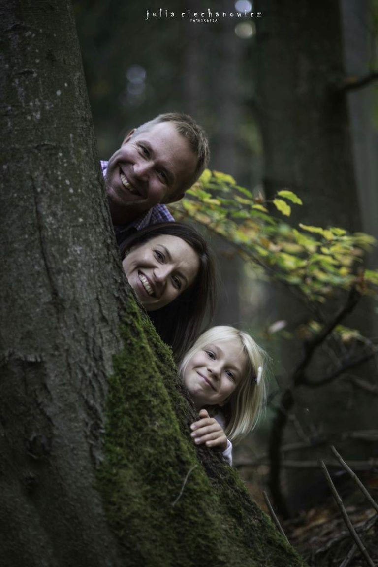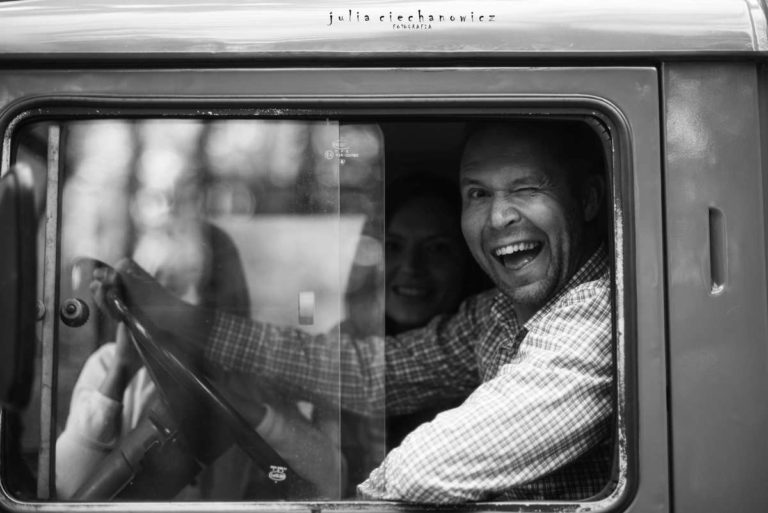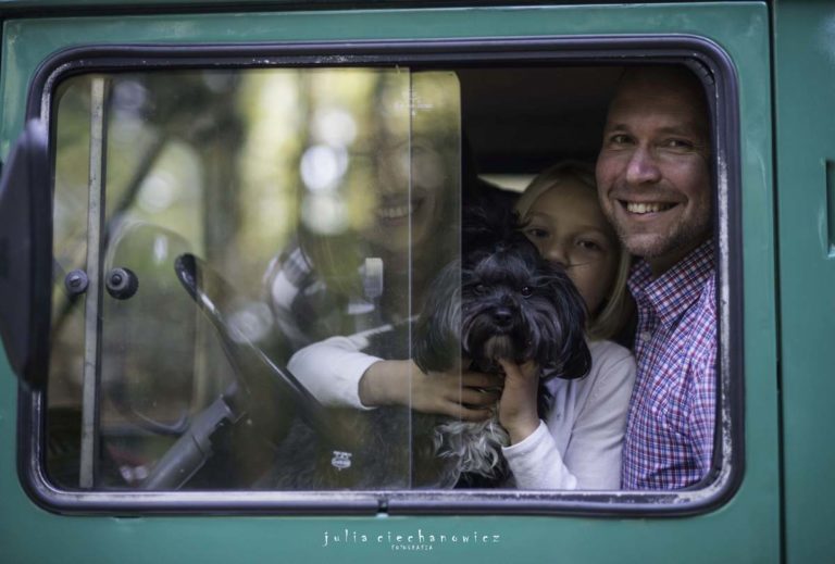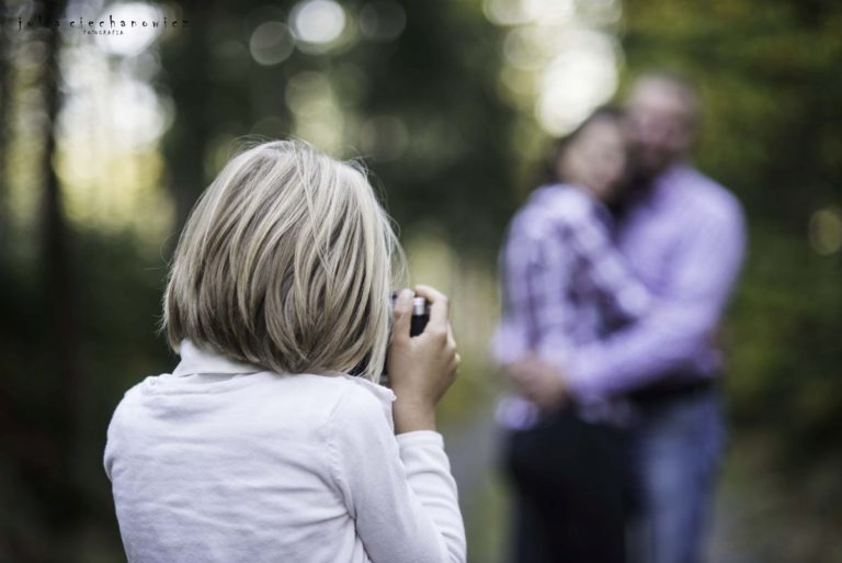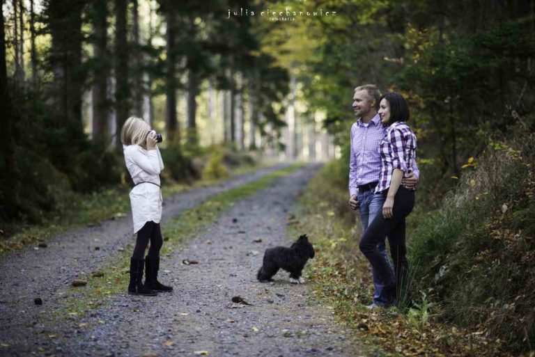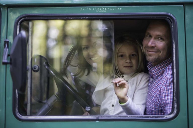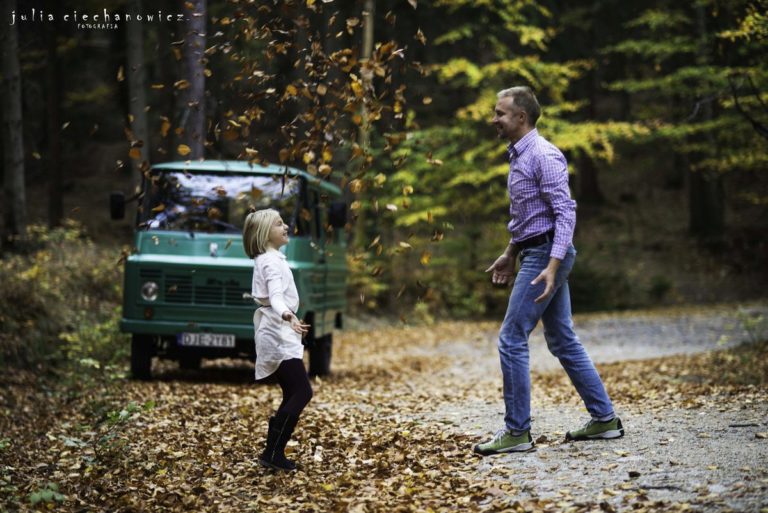 Spacerowaliśmy po lesie tylko nam znanymi ścieżkami. Hania w pewnym momencie zapragnęła poczuć się jak fotografii i zrobić rodzicom kilka zdjęć. Ania i Krzyś chętnie na to przystali. Tak powstało kilka fotografii, na których fotograf stał się nie tylko twórcą, ale także modelem.Do sesji wykorzystaliśmy również zabytkowego Żuka – obiekt westchnień Krzysztofa, bo jak się okazało, Krzyś jest pasjonatem starych samochodów.